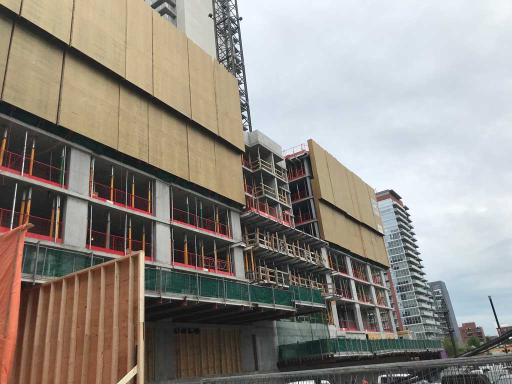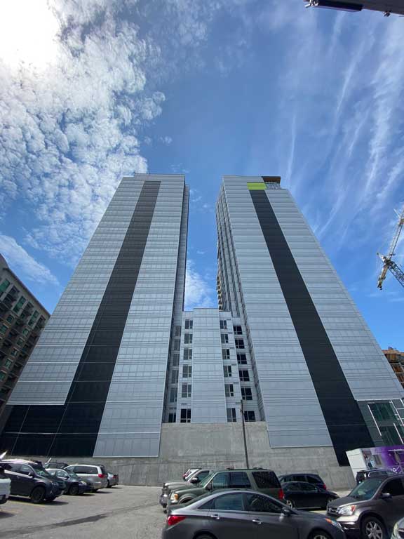 Form, place and finish concrete for the new 29 stories twin tower with 2 below grade levels of concrete structure. Building floor plate is 12,000 sf. (approximately 1,100 square meters).